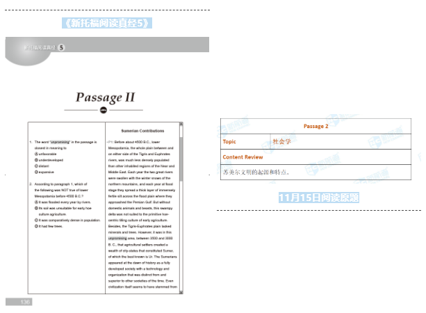 11月15日的托福考试,《新托福阅读真经5》命中 1题。