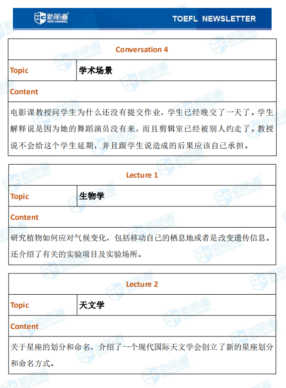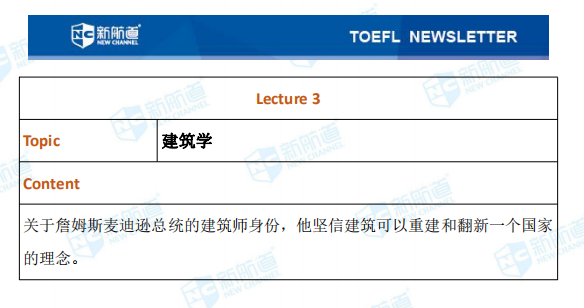 听力的lecture部分考了生物学、天文学、建筑学等等。