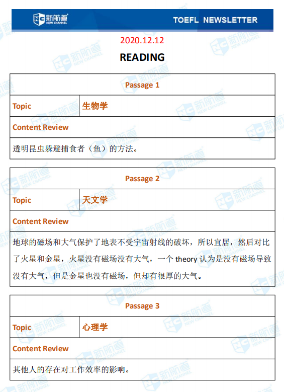 新航道小编第一时间推送本场考试的完整版考题回忆和解析。带你了解最新的考题详情,帮助小伙伴们更好的备战托福,祝宝宝们早日和托福分手!以下就是12月12日的托福考试。