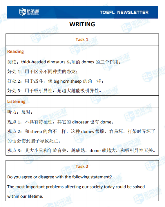 阅读部分:thick-headed dinosaurs 头顶的 domes 的三个作用。