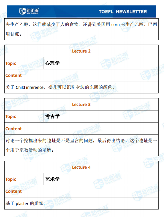 听力考试的lecture部分考了心理学、考古学和艺术学等方面的内容。