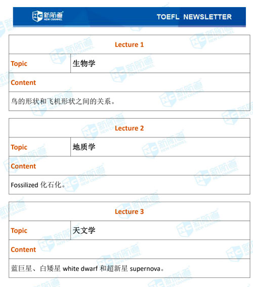 听力的lecture部分考了生物学、地质学、天文学等等。