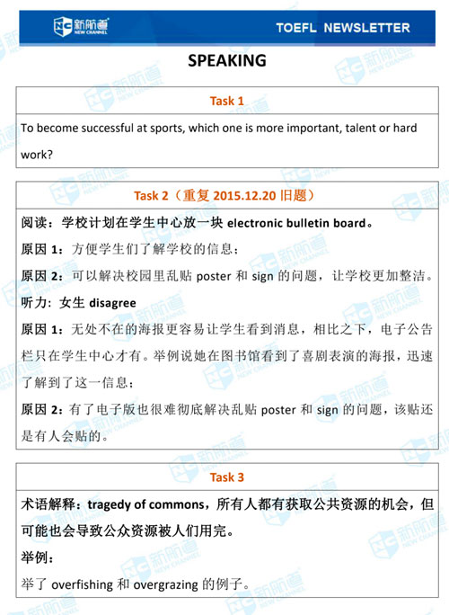 1月16日的托福考试,《新托福口语真经5》命中 1题。