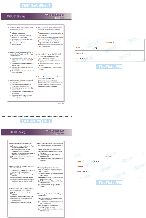 2月27日的托福考试,《新托福听力真经6》命中 2题。