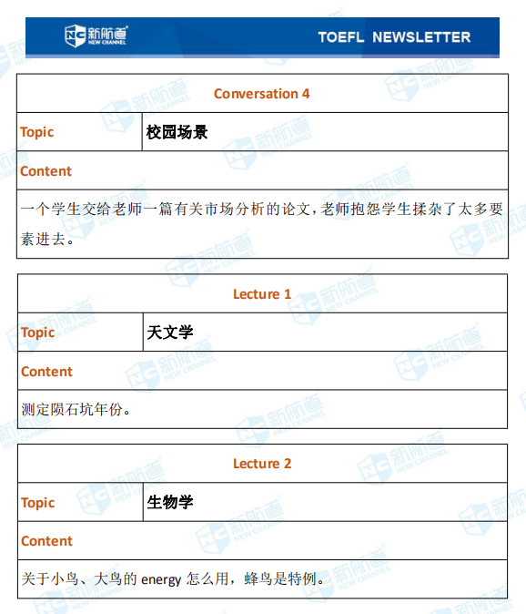 听力的lecture部分考了天文学、生物学、艺术等等。