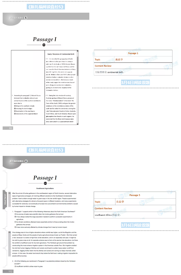 3月6日的托福考试,《新托福阅读真经5》、《新托福阅读真经6》各命中 1题。