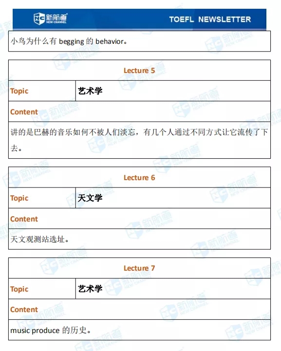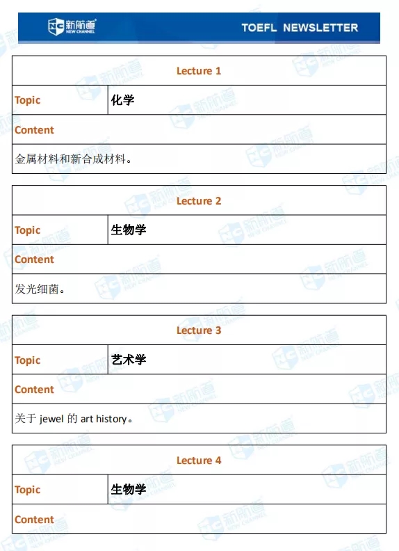 听力的lecture部分考了化学、生物学、艺术学等等。