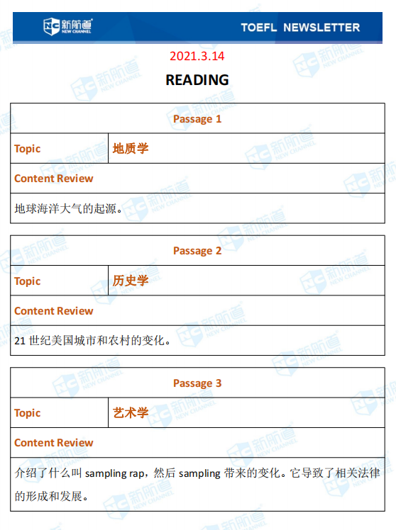 新航道小编第一时间推送本场考试的完整版考题回忆和解析。带你了解最新的考题详情,帮助小伙伴们更好的备战托福,祝宝宝们早日和托福分手!以下就是3月14日的托福考试。
