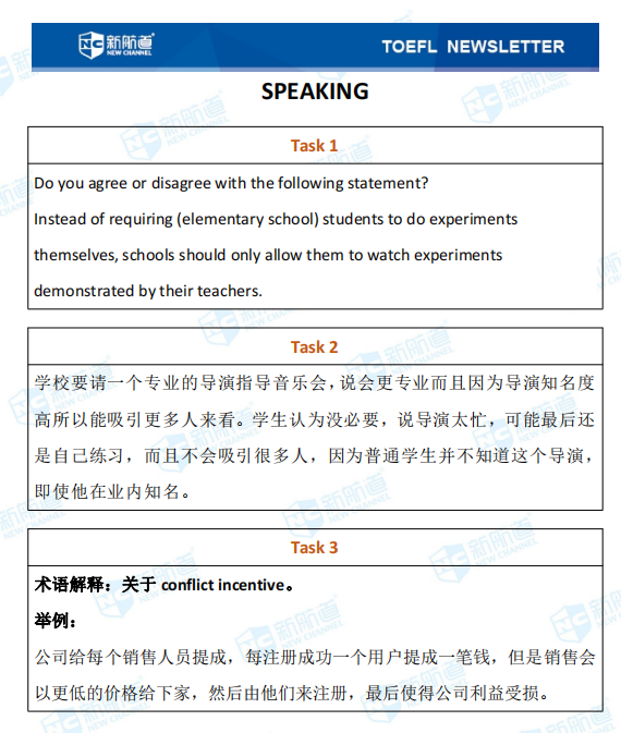 摘要:新航道小编第一时间推送本场考试的完整版考题回忆和解析。带你了解最新的考题详情,帮助小伙伴们更好的备战托福,祝宝宝们早日和托福分手!以下就是3月21日的托福考试。