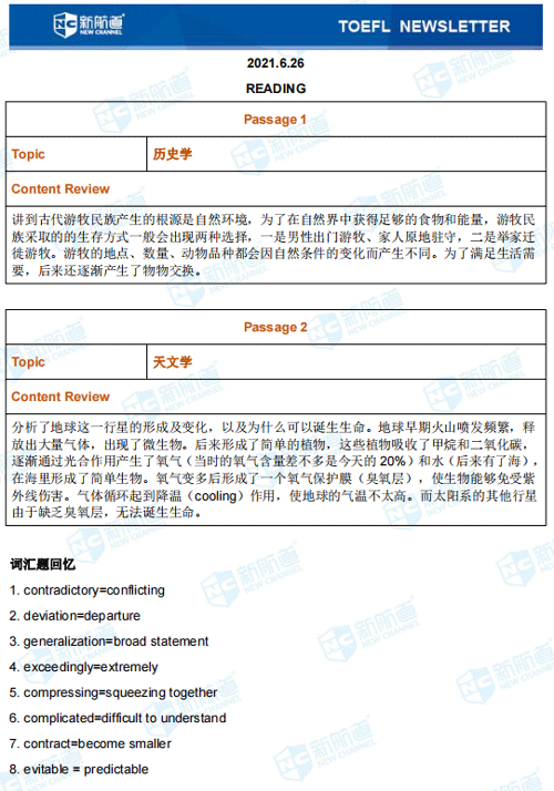 新航道小编第一时间推送本场考试的完整版考题回忆和解析。带你了解最新的考题详情,帮助小伙伴们更好的备战托福,祝宝宝们早日和托福分手!以下就是6月26日的托福考试。