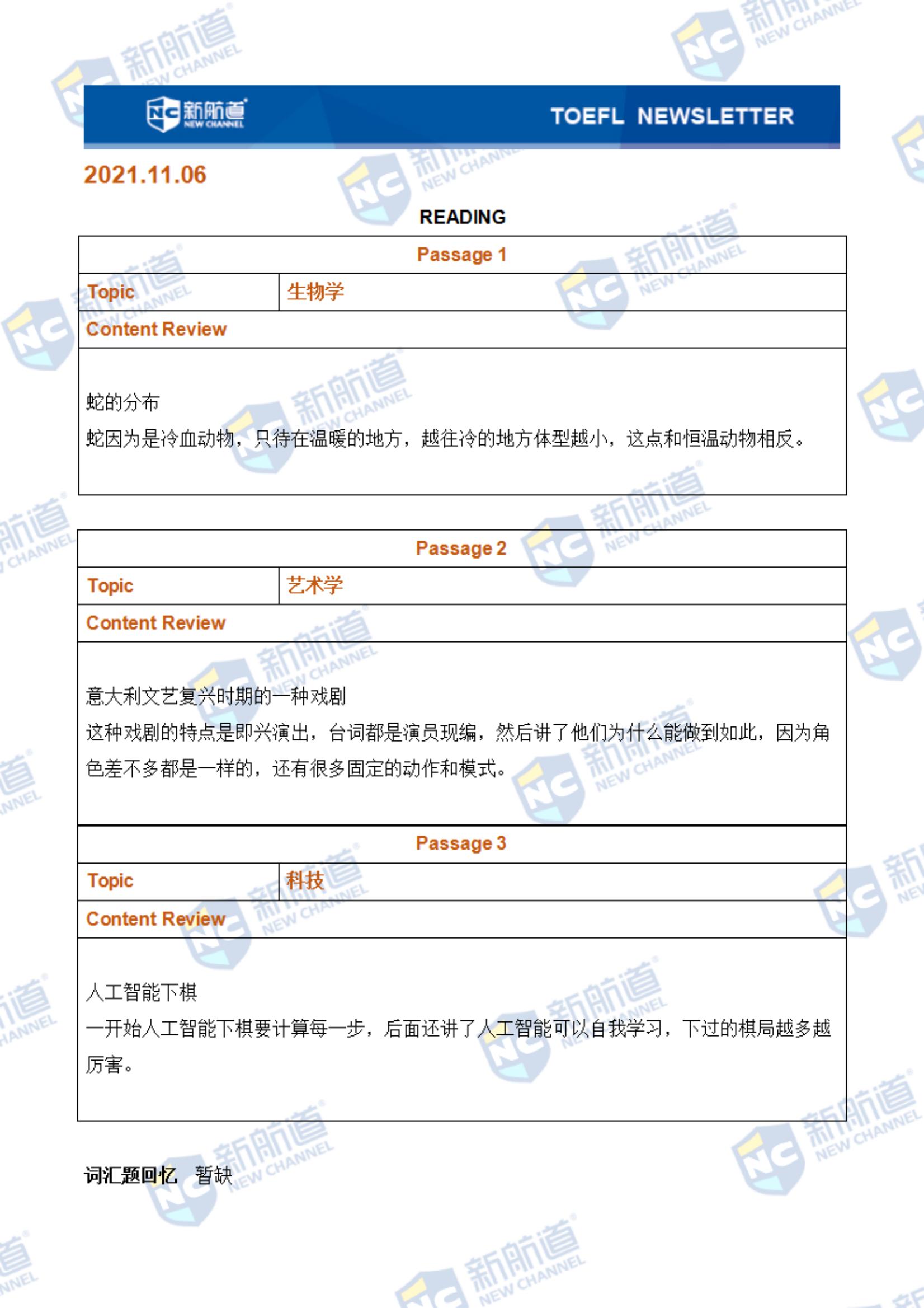 新航道小编第一时间推送本场考试的完整版考题回忆和解析。带你了解最新的考题详情,帮助小伙伴们更好的备战托福,祝宝宝们早日和托福分手!以下就是11月6日的托福考试。